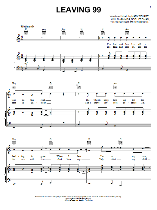 Download or print Audio Adrenaline Leaving 99 sheet music, chords and digital score arranged for Piano, Vocal & Guitar Chords (Right-Hand Melody). This Christian score includes 4 page(s).