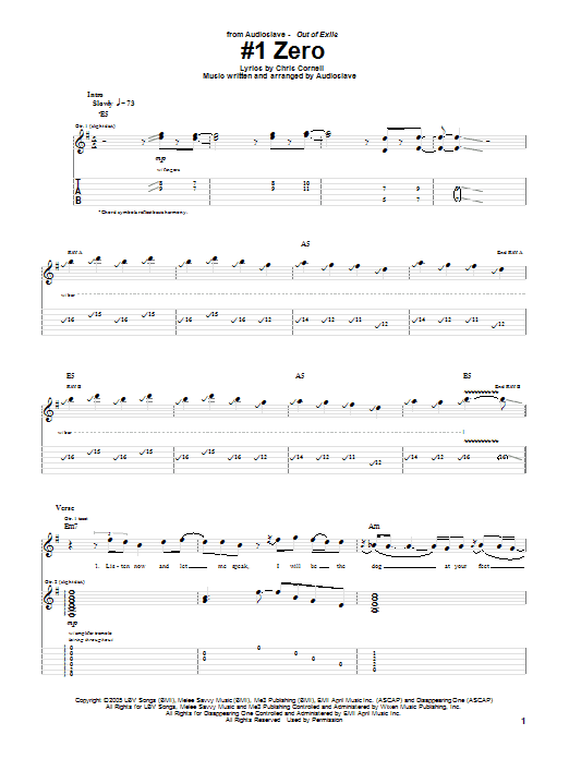Download or print Audioslave #1 Zero sheet music, chords and digital score arranged for Guitar Tab. This Metal score includes 9 page(s).