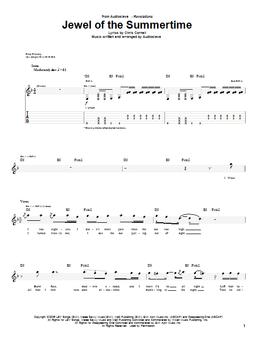 Download or print Audioslave Jewel Of The Summertime sheet music, chords and digital score arranged for Guitar Tab. This Metal score includes 6 page(s).