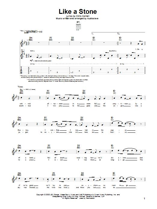 Download or print Audioslave Like A Stone sheet music, chords and digital score arranged for Guitar Chords/Lyrics. This Pop score includes 2 page(s).