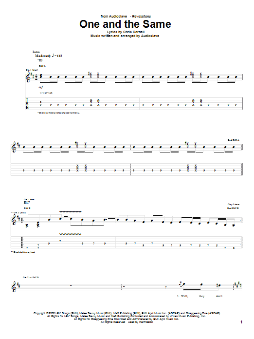 Download or print Audioslave One And The Same sheet music, chords and digital score arranged for Guitar Tab. This Metal score includes 6 page(s).