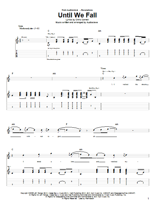 Download or print Audioslave Until We Fall sheet music, chords and digital score arranged for Guitar Tab. This Metal score includes 7 page(s).