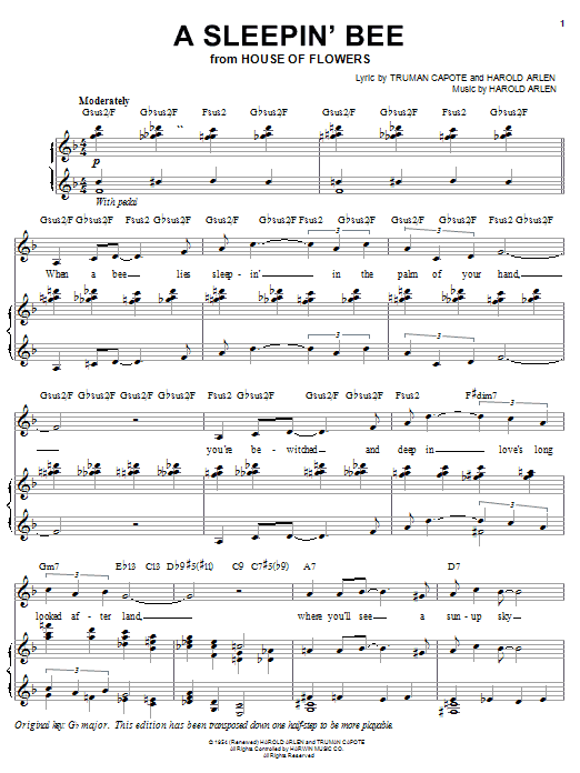 Download or print Audra McDonald A Sleepin' Bee sheet music, chords and digital score arranged for Piano, Vocal & Guitar Chords (Right-Hand Melody). This Standards score includes 6 page(s).