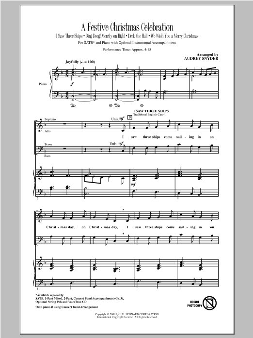 Download or print Audrey Snyder A Festive Christmas Celebration sheet music, chords and digital score arranged for 3-Part Mixed Choir. This Christmas score includes 22 page(s).
