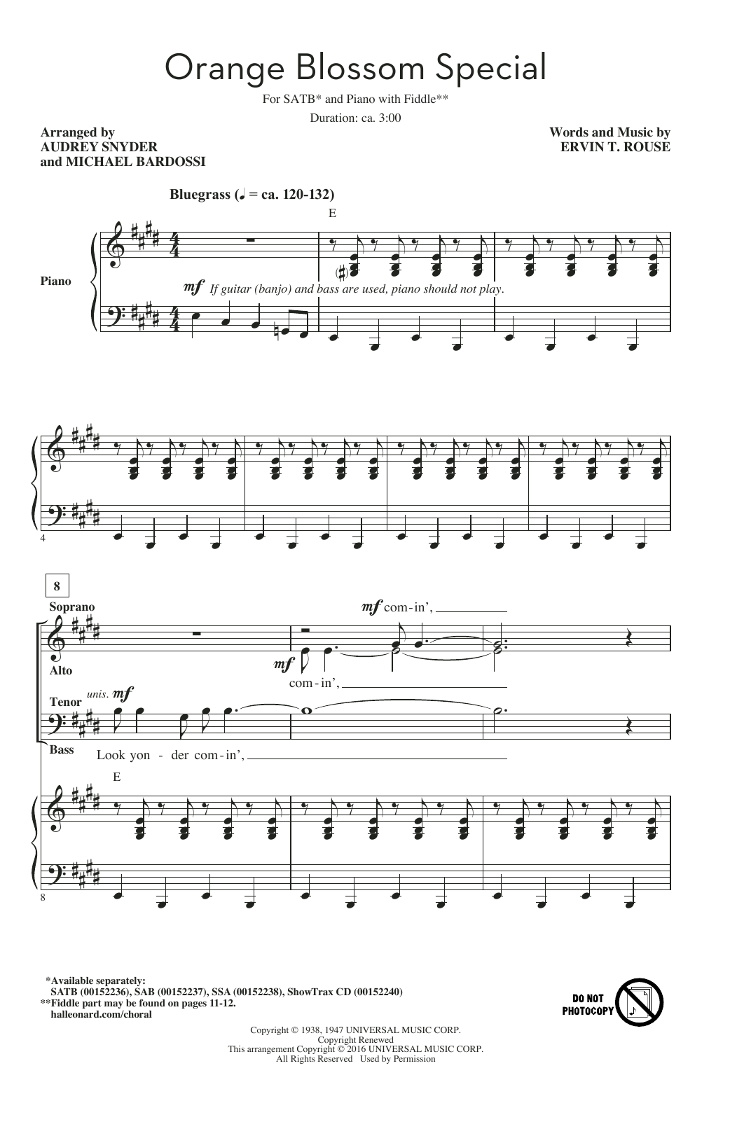 Download or print Audrey Snyder Orange Blossom Special sheet music, chords and digital score arranged for SSA Choir. This Country score includes 11 page(s).