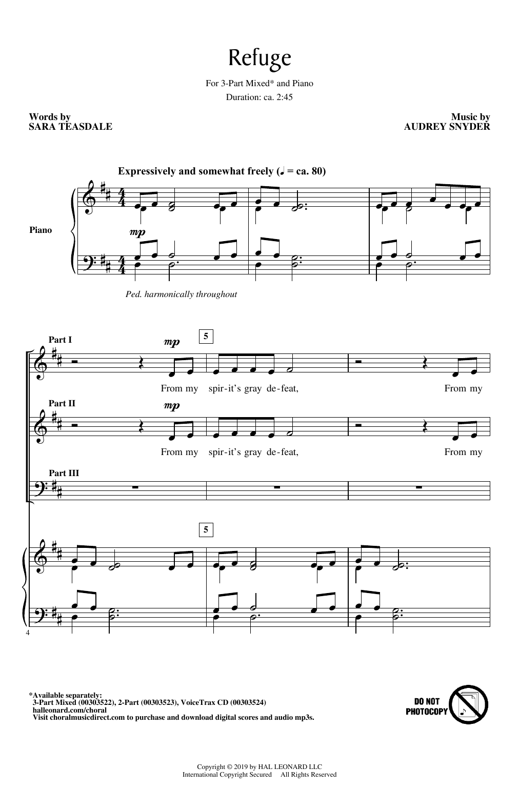Download or print Audrey Snyder Refuge sheet music, chords and digital score arranged for 2-Part Choir. This Concert score includes 7 page(s).