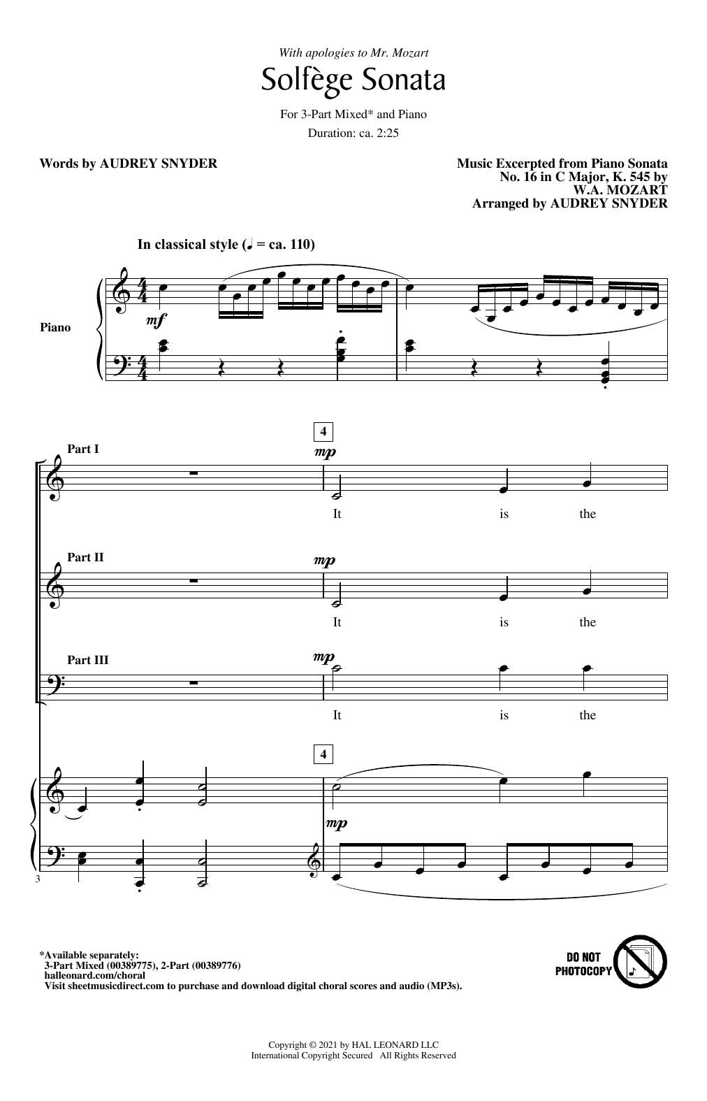 Download or print Audrey Snyder Solfege Sonata sheet music, chords and digital score arranged for 2-Part Choir. This Concert score includes 11 page(s).