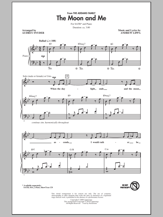 Download or print Audrey Snyder The Moon And Me sheet music, chords and digital score arranged for 2-Part Choir. This Musical/Show score includes 10 page(s).