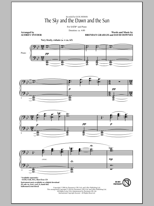 Download or print Audrey Snyder The Sky And The Dawn And The Sun sheet music, chords and digital score arranged for SSA Choir. This Irish score includes 11 page(s).