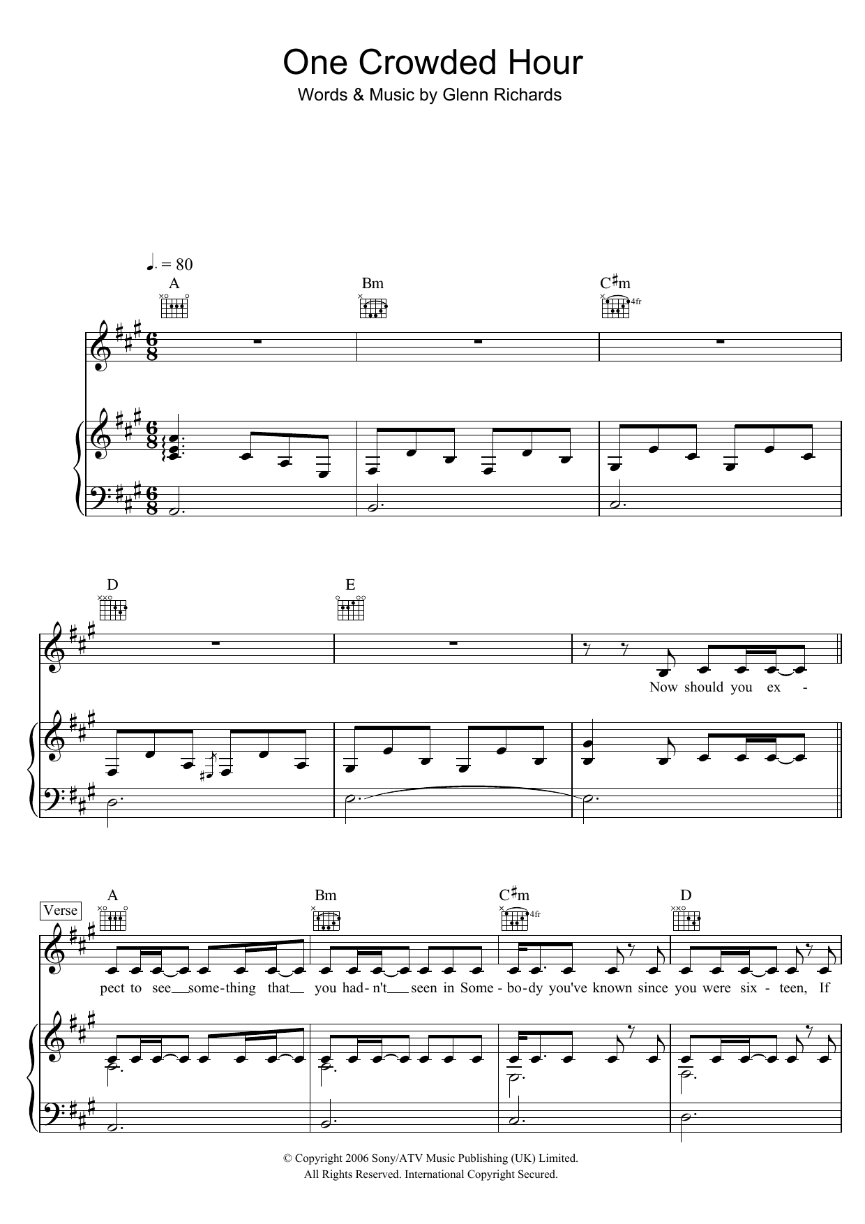 Download or print Augie March One Crowded Hour sheet music, chords and digital score arranged for Piano, Vocal & Guitar Chords. This Pop score includes 11 page(s).
