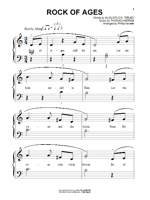 Download or print Augustus M. Toplady Rock Of Ages (arr. Phillip Keveren) sheet music, chords and digital score arranged for Beginning Piano Solo. This Christian score includes 3 page(s).