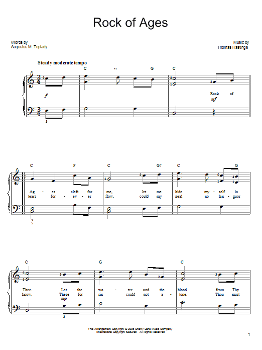 Download or print Augustus M. Toplady Rock Of Ages sheet music, chords and digital score arranged for Accordion. This Gospel score includes 2 page(s).
