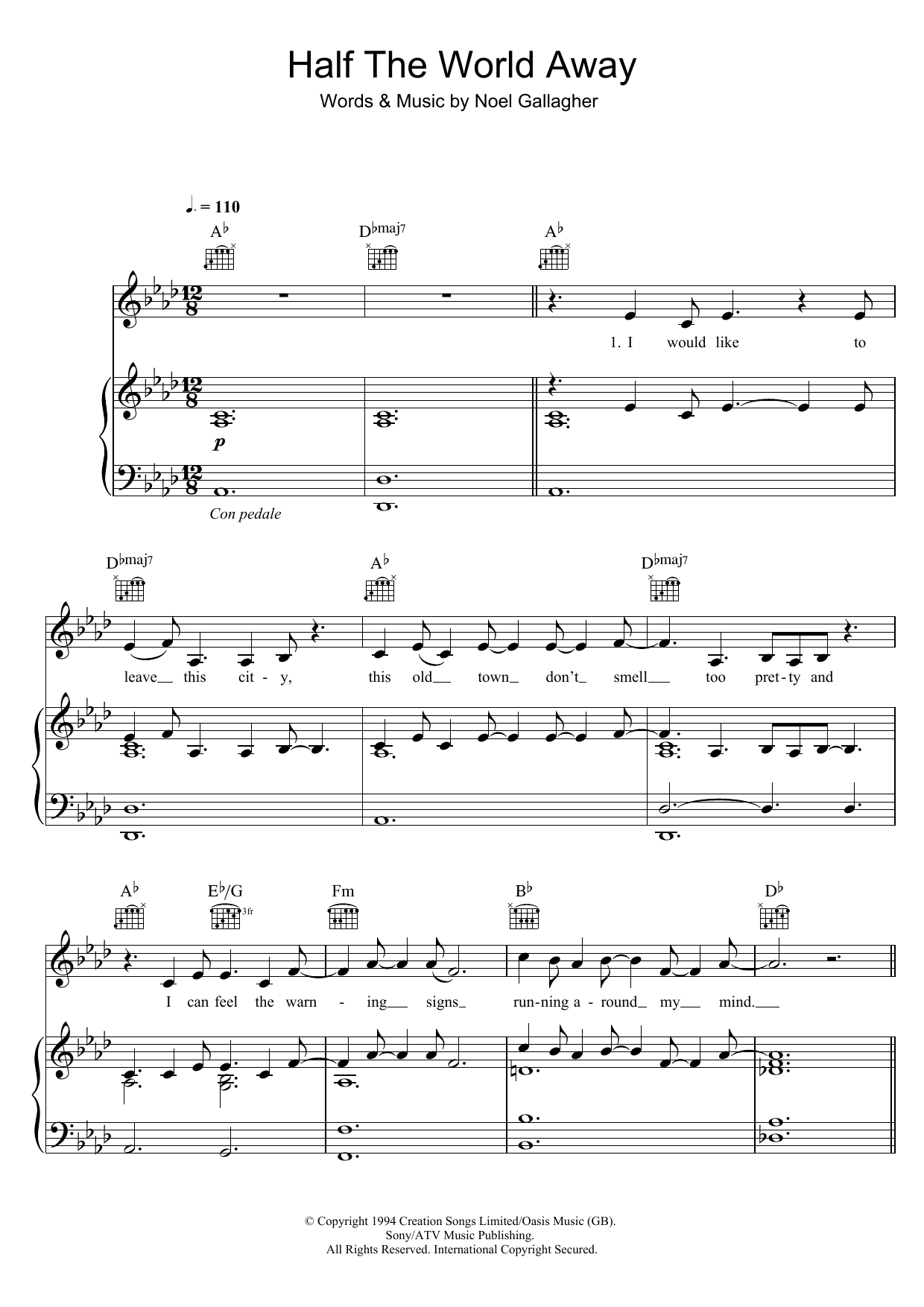 Download or print Aurora Half The World Away sheet music, chords and digital score arranged for Piano, Vocal & Guitar Chords (Right-Hand Melody). This Film/TV score includes 6 page(s).