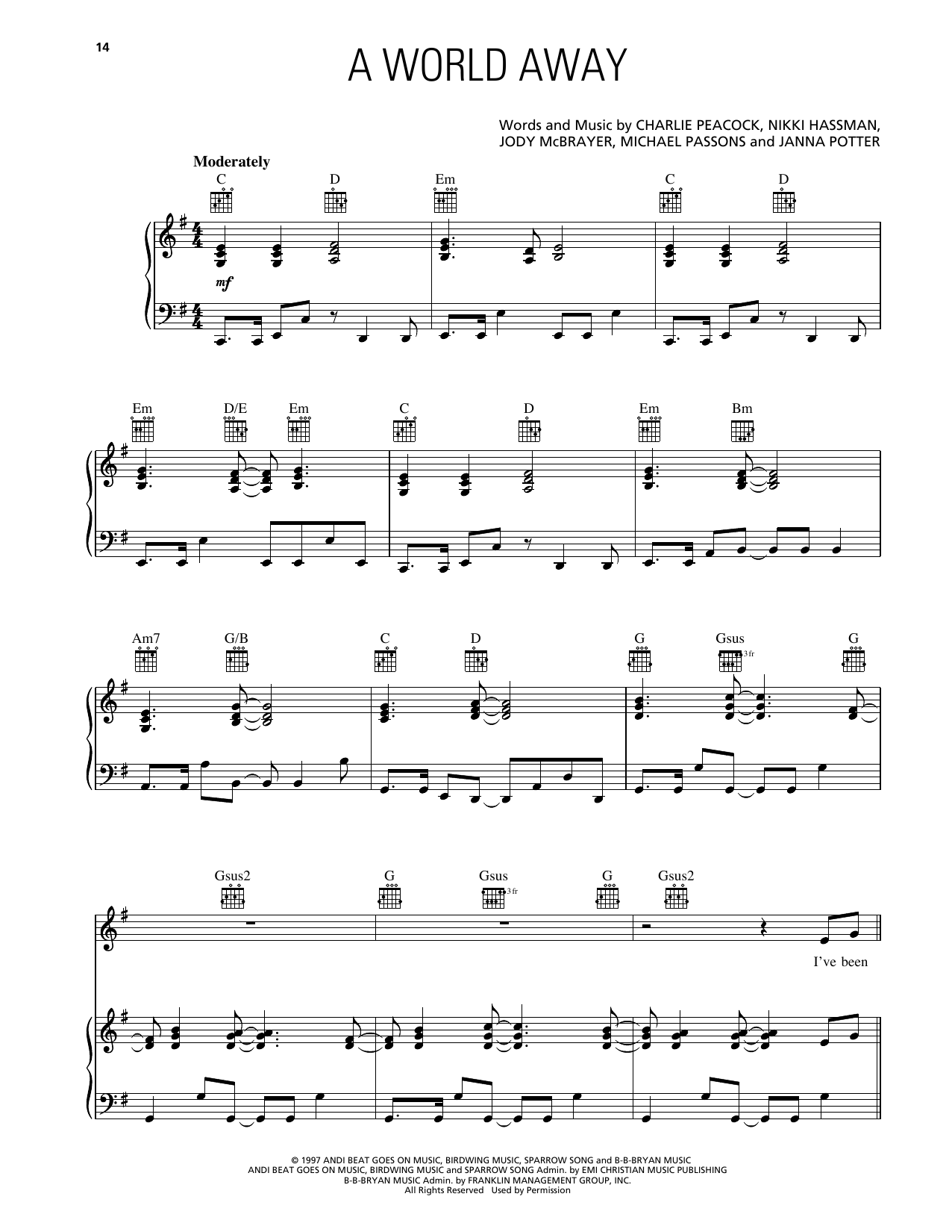 Download or print Avalon A World Away sheet music, chords and digital score arranged for Piano, Vocal & Guitar Chords (Right-Hand Melody). This Gospel score includes 9 page(s).
