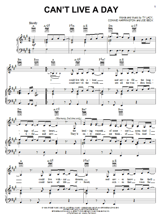 Quick facts Can't Live A Day about digital sheet music