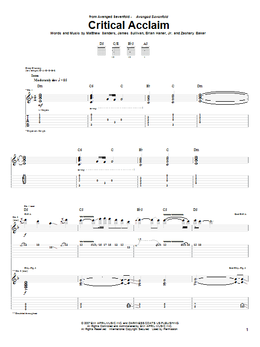 Download or print Avenged Sevenfold Critical Acclaim sheet music, chords and digital score arranged for Guitar Tab. This Metal score includes 15 page(s).