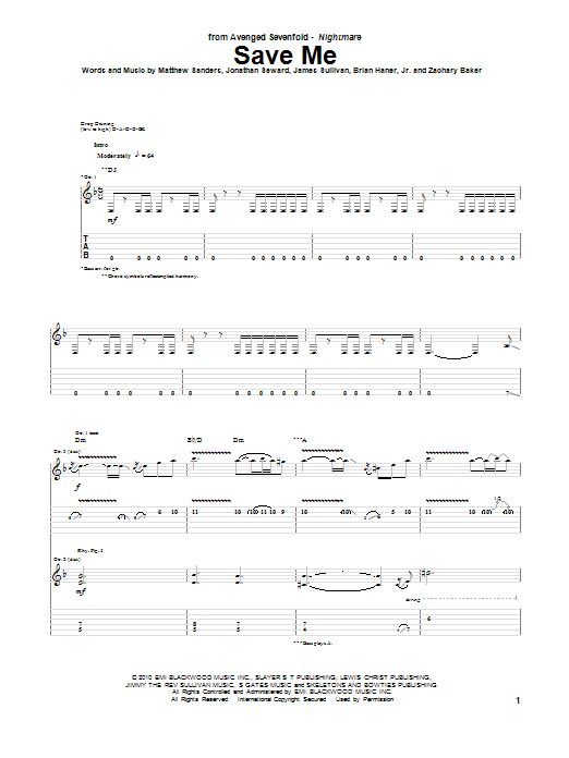 Download or print Avenged Sevenfold Save Me sheet music, chords and digital score arranged for Guitar Tab. This Pop score includes 26 page(s).