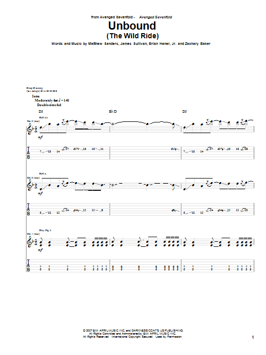 Download or print Avenged Sevenfold Unbound (The Wild Ride) sheet music, chords and digital score arranged for Guitar Tab. This Metal score includes 16 page(s).