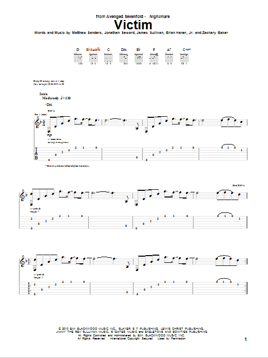 Download or print Avenged Sevenfold Victim sheet music, chords and digital score arranged for Guitar Tab. This Pop score includes 21 page(s).