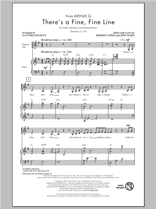Download or print Alan Billingsley There's A Fine, Fine Line sheet music, chords and digital score arranged for SAB Choir. This Concert score includes 2 page(s).