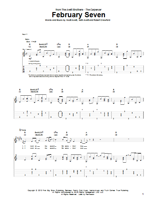 Download or print Avett Brothers February Seven sheet music, chords and digital score arranged for Guitar Tab. This Pop score includes 7 page(s).