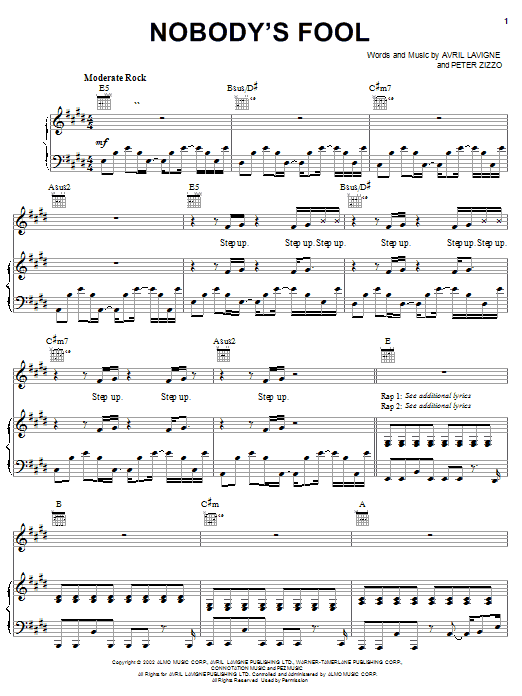 Download or print Avril Lavigne Nobody's Fool sheet music, chords and digital score arranged for Guitar Chords/Lyrics. This Pop score includes 3 page(s).