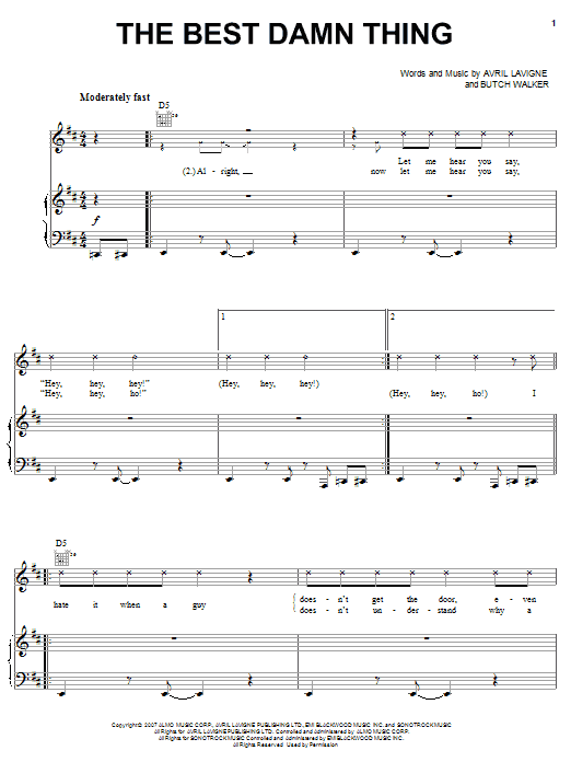 Download or print Avril Lavigne The Best Damn Thing sheet music, chords and digital score arranged for Piano, Vocal & Guitar Chords (Right-Hand Melody). This Pop score includes 8 page(s).