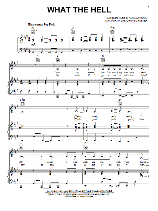 Download or print Avril Lavigne What The Hell sheet music, chords and digital score arranged for Piano, Vocal & Guitar Chords (Right-Hand Melody). This Pop score includes 8 page(s).
