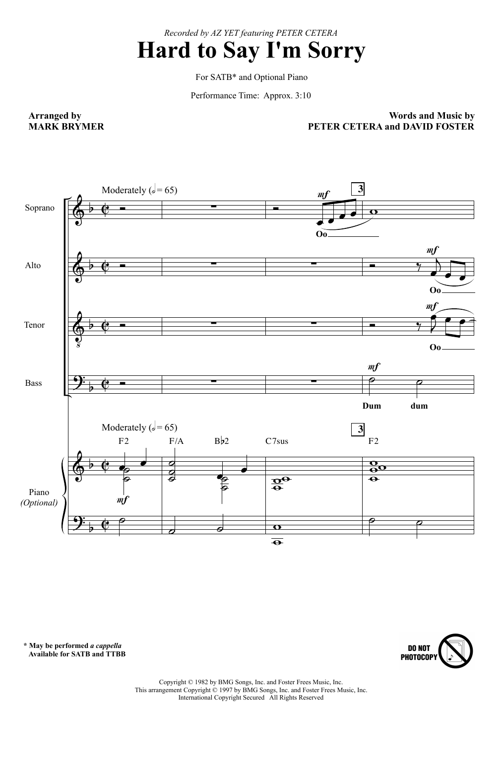 Download or print Az Yet Hard To Say I'm Sorry (feat. Peter Cetera) (arr. Mark Brymer) sheet music, chords and digital score arranged for TTBB Choir. This Pop score includes 14 page(s).