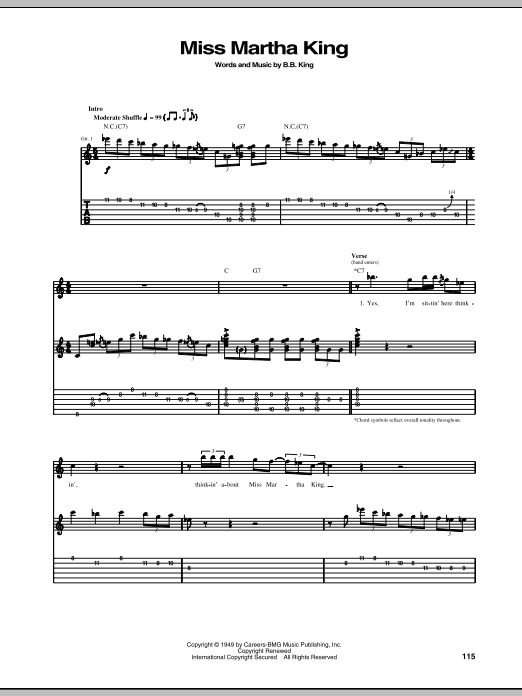 Download or print B.B. King Miss Martha King sheet music, chords and digital score arranged for Guitar Tab. This Blues score includes 4 page(s).