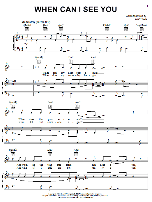 Download or print Babyface When Can I See You sheet music, chords and digital score arranged for Lead Sheet / Fake Book. This Pop score includes 3 page(s).