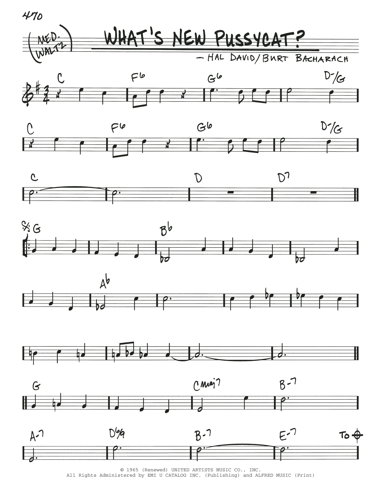 Download or print Bacharach & David What's New Pussycat? sheet music, chords and digital score arranged for Real Book – Melody & Chords. This Jazz score includes 2 page(s).