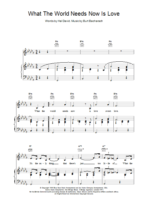 Quick facts What The World Needs Now Is Love about digital sheet music