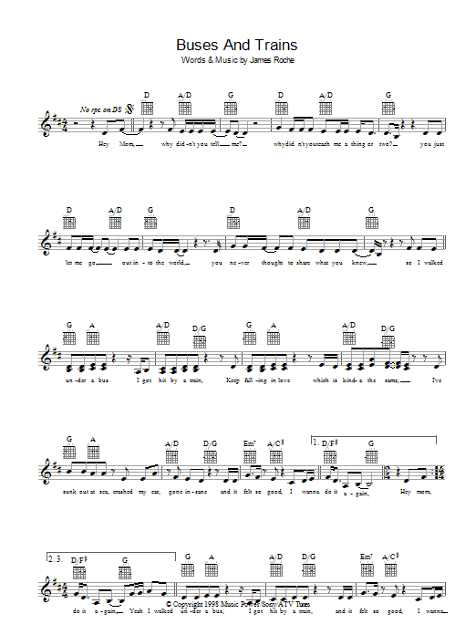 Download or print Bachelor Girl Buses And Trains sheet music, chords and digital score arranged for Lead Sheet / Fake Book. This Pop score includes 2 page(s).