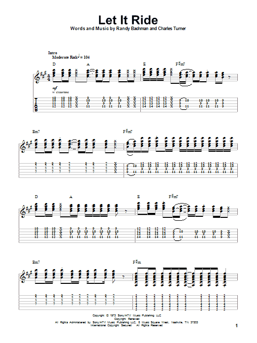 Download or print Bachman-Turner Overdrive Let It Ride sheet music, chords and digital score arranged for Guitar Tab. This Rock score includes 5 page(s).