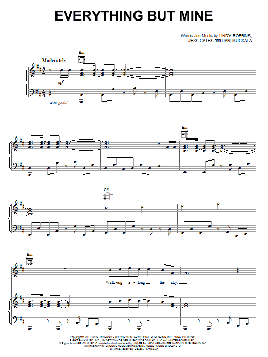 Download or print Backstreet Boys Everything But Mine sheet music, chords and digital score arranged for Piano, Vocal & Guitar Chords (Right-Hand Melody). This Pop score includes 8 page(s).