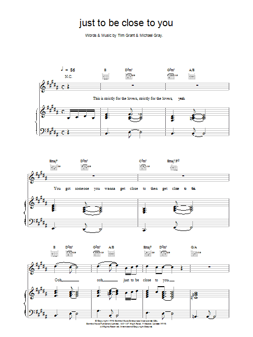 Quick facts Just To Be Close To You about digital sheet music