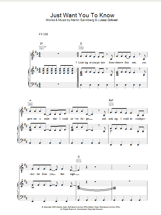Download or print Backstreet Boys Just Want You To Know sheet music, chords and digital score arranged for Piano, Vocal & Guitar Chords (Right-Hand Melody). This Pop score includes 6 page(s).