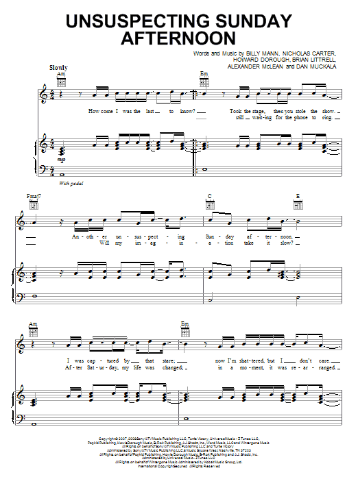 Download or print Backstreet Boys Unsuspecting Sunday Afternoon sheet music, chords and digital score arranged for Piano, Vocal & Guitar Chords (Right-Hand Melody). This Pop score includes 4 page(s).