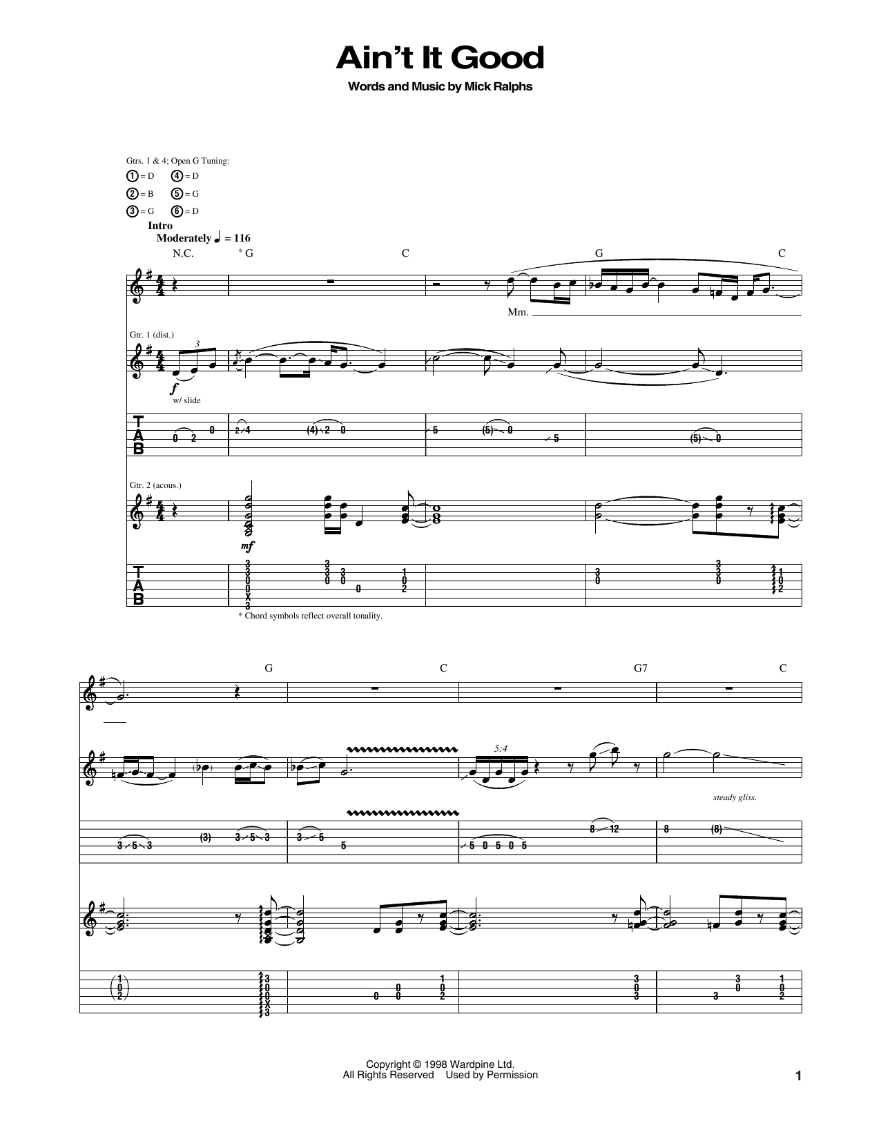 Download or print Bad Company Ain't It Good sheet music, chords and digital score arranged for Guitar Tab. This Pop score includes 8 page(s).