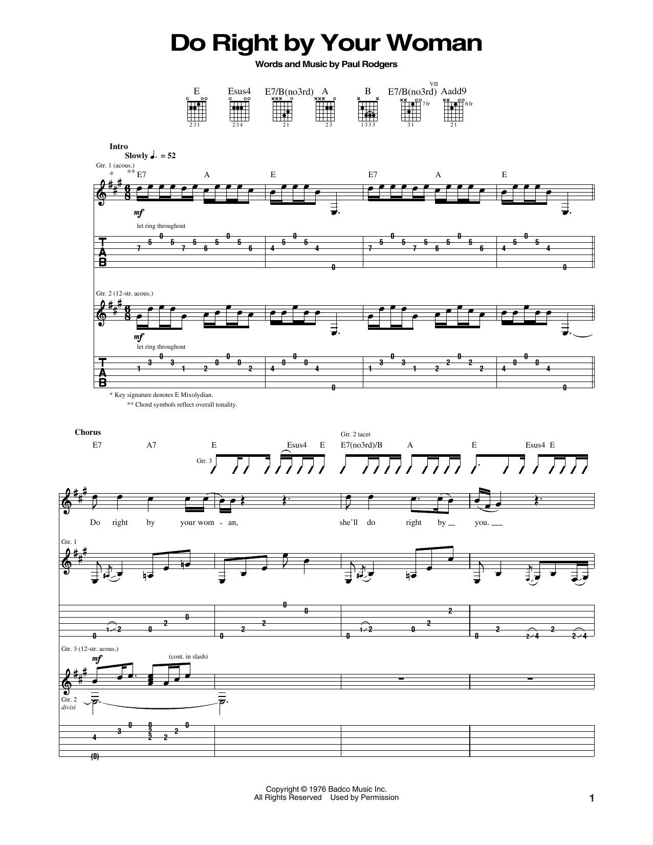 Download or print Bad Company Do Right By Your Woman sheet music, chords and digital score arranged for Guitar Tab. This Pop score includes 5 page(s).