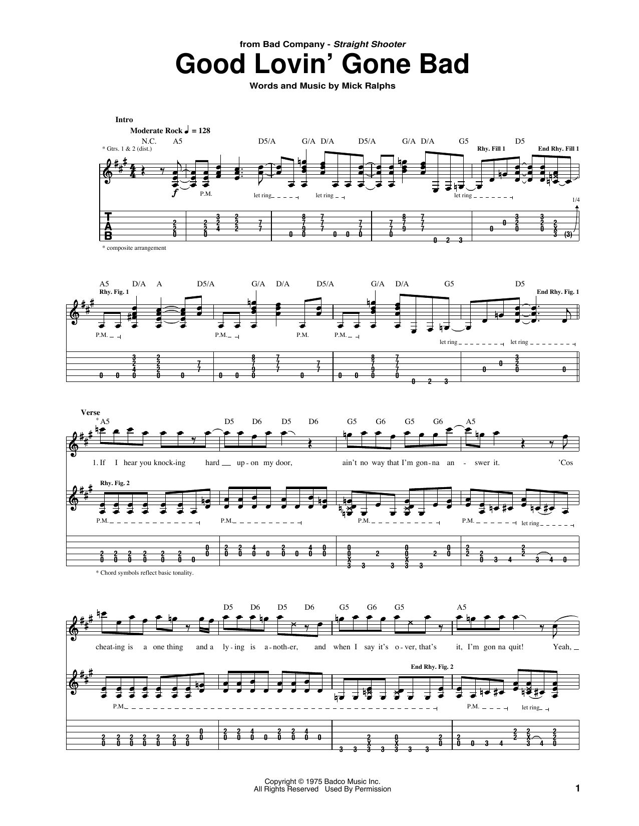 Download or print Bad Company Good Lovin' Gone Bad sheet music, chords and digital score arranged for Guitar Tab. This Pop score includes 7 page(s).