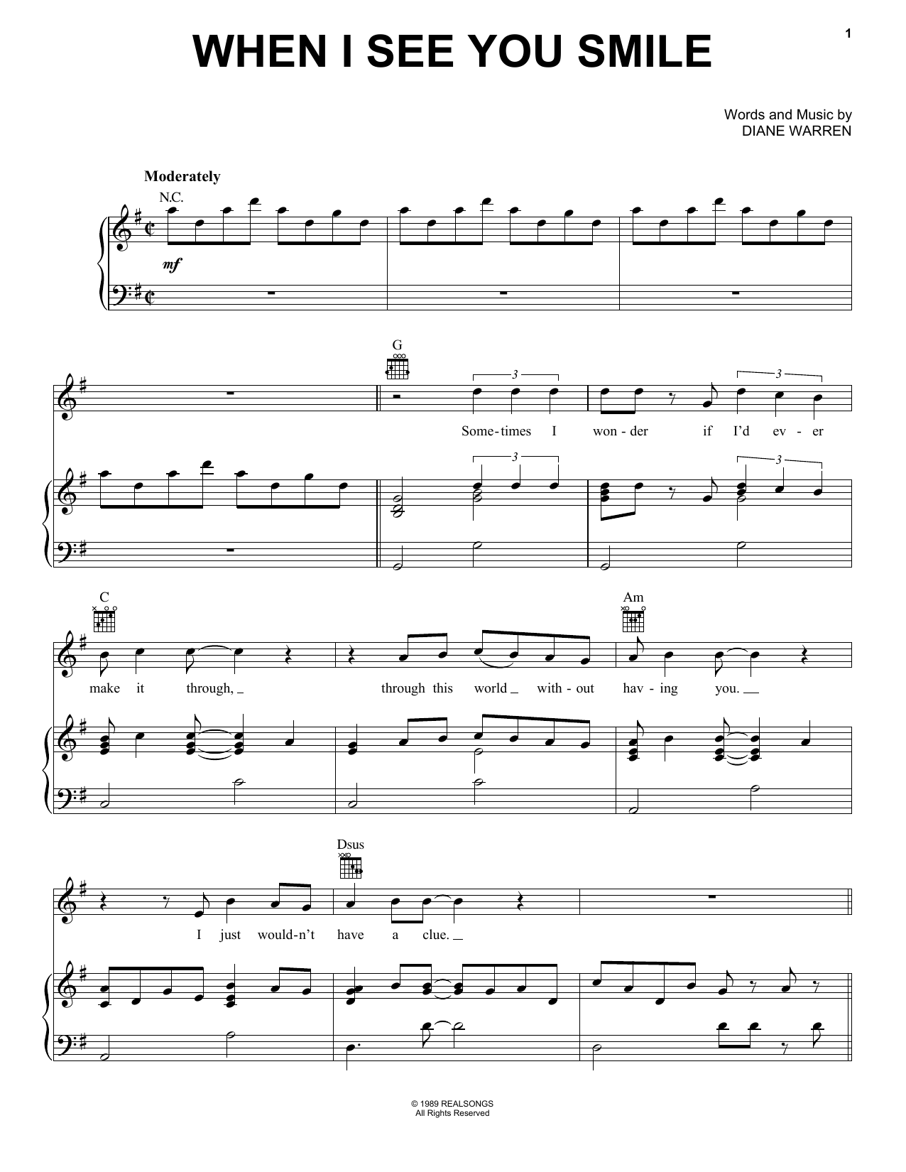 Download or print Bad English When I See You Smile sheet music, chords and digital score arranged for Piano, Vocal & Guitar Chords (Right-Hand Melody). This Pop score includes 8 page(s).