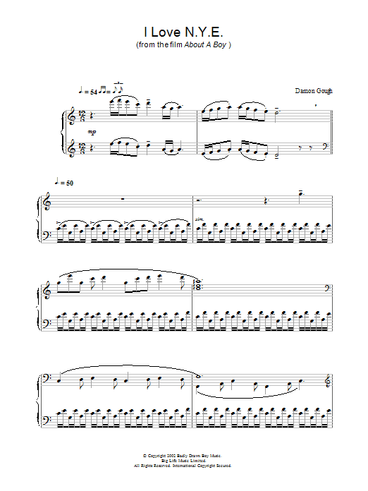 Download or print About A Boy I Love N.Y.E. sheet music, chords and digital score arranged for Piano Solo. This Film/TV score includes 4 page(s).