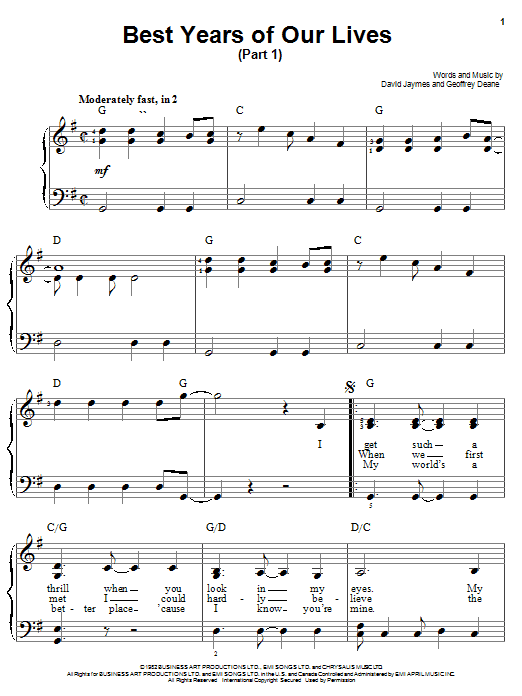 Quick facts Best Years Of Our Lives (Part I) about digital sheet music