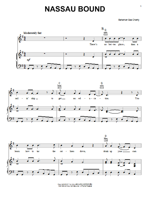 Download or print Bahaman Sea Chanty Nassau Bound sheet music, chords and digital score arranged for Piano, Vocal & Guitar Chords (Right-Hand Melody). This Folk score includes 6 page(s).