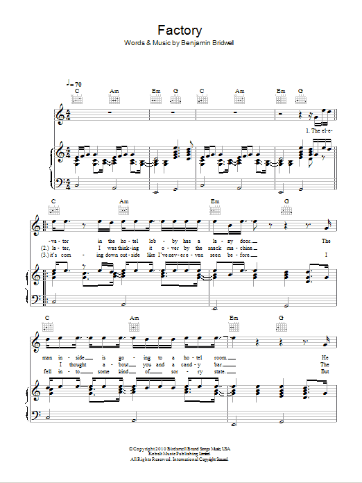 Download or print Band Of Horses Factory sheet music, chords and digital score arranged for Piano, Vocal & Guitar Chords. This Pop score includes 3 page(s).