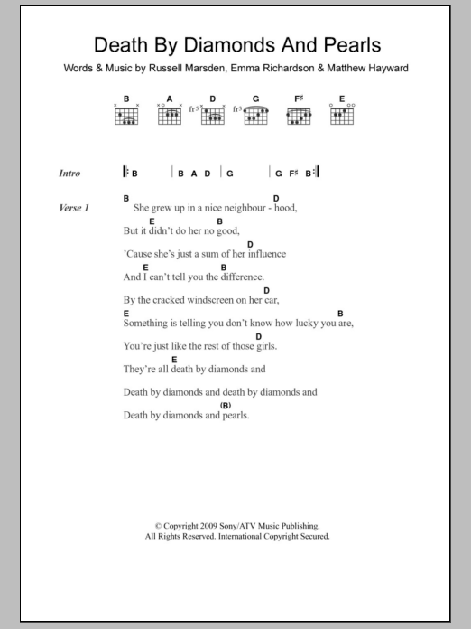 Download or print Band Of Skulls Death By Diamonds And Pearls sheet music, chords and digital score arranged for Guitar Chords/Lyrics. This Rock score includes 2 page(s).