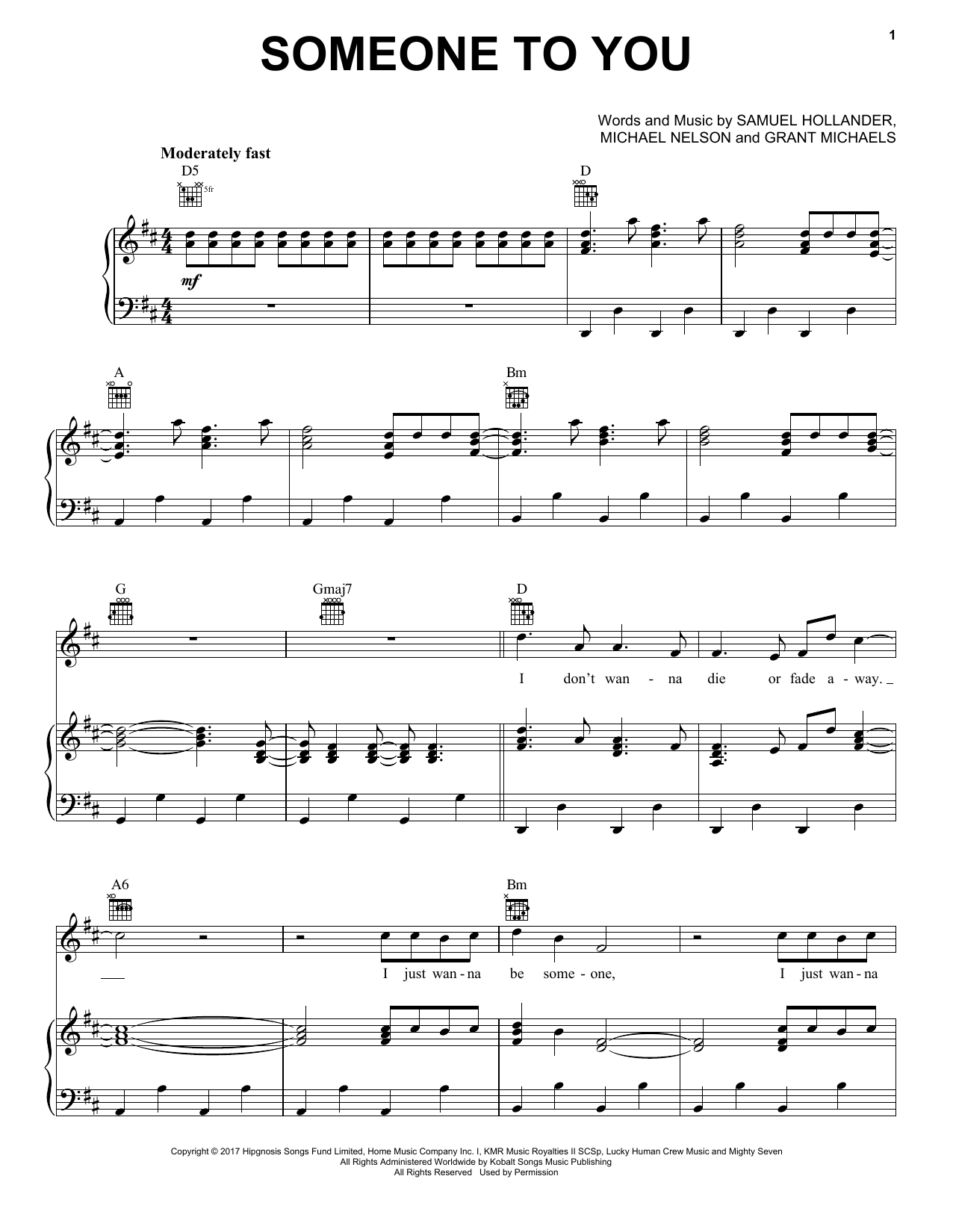 Download or print BANNERS Someone To You sheet music, chords and digital score arranged for Piano, Vocal & Guitar Chords (Right-Hand Melody). This Pop score includes 8 page(s).