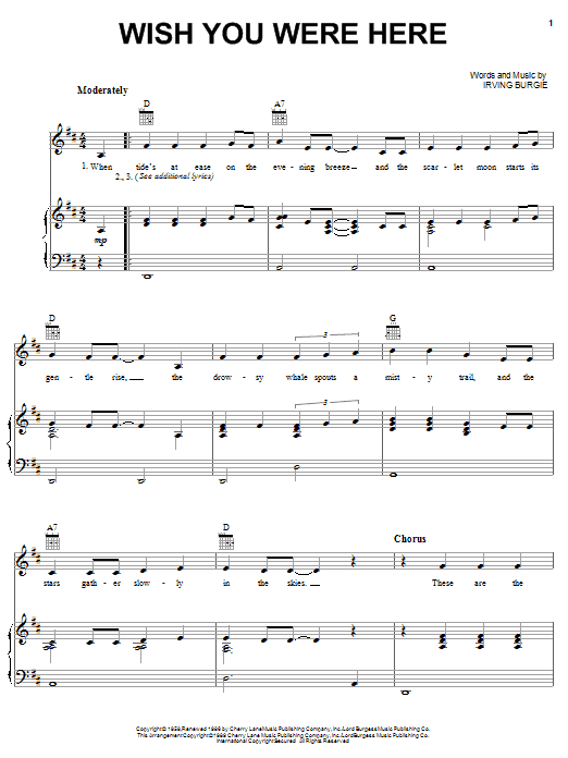 Download or print Barbara Mandrell Wish You Were Here sheet music, chords and digital score arranged for Piano, Vocal & Guitar Chords (Right-Hand Melody). This Country score includes 2 page(s).